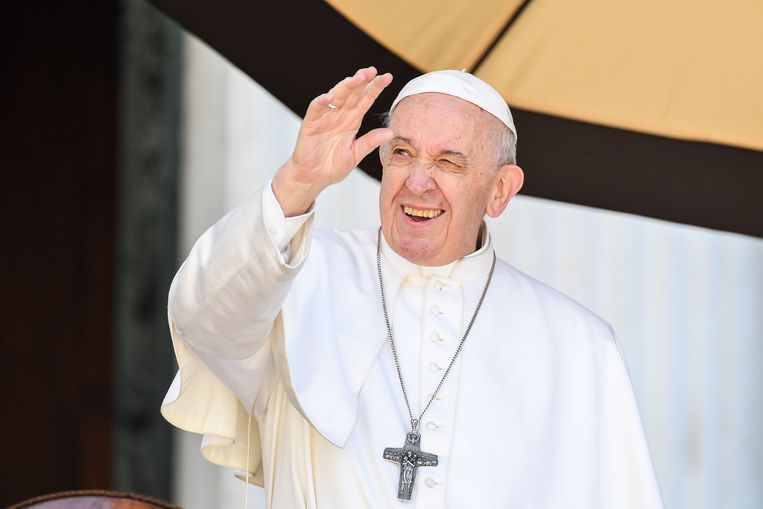 Paus Zet Masker Af En Raakt Gelovigen Aan Terwijl Hij Zegt Dat Gods Liefde Corona Zal Verslaan Buitenland Nieuws Hln